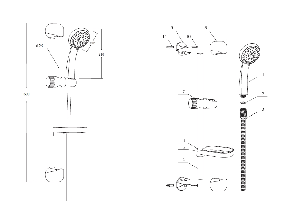 Душевой гарнитур имеет самоочищающуюся душевую лейку с 5 режимами струи. Гарнитур выполнен в современном дизайне с лейкой круглой формы. Диаметр лейки составляет 8,5 см. Шланг 150 см. Наклон лейки регулируются.