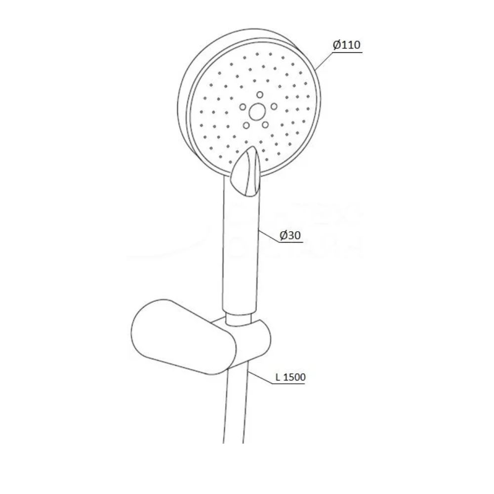 В состав набора входит душевая лейка шланг 1500 мм и держатель для душа.