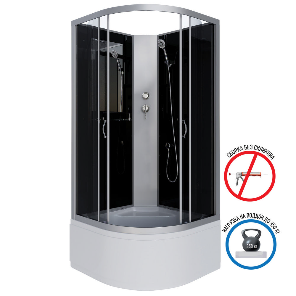Душевая кабина 90x90 стекло тонированное, профиль хром матовый (NG-2508-14BK)