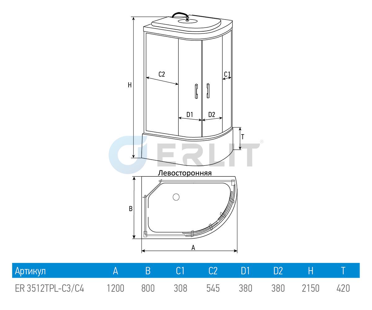 Душевая кабина Erlit 120х80 стекло матовое L (ER3512TPL-C3)