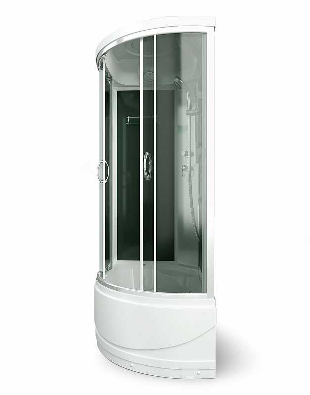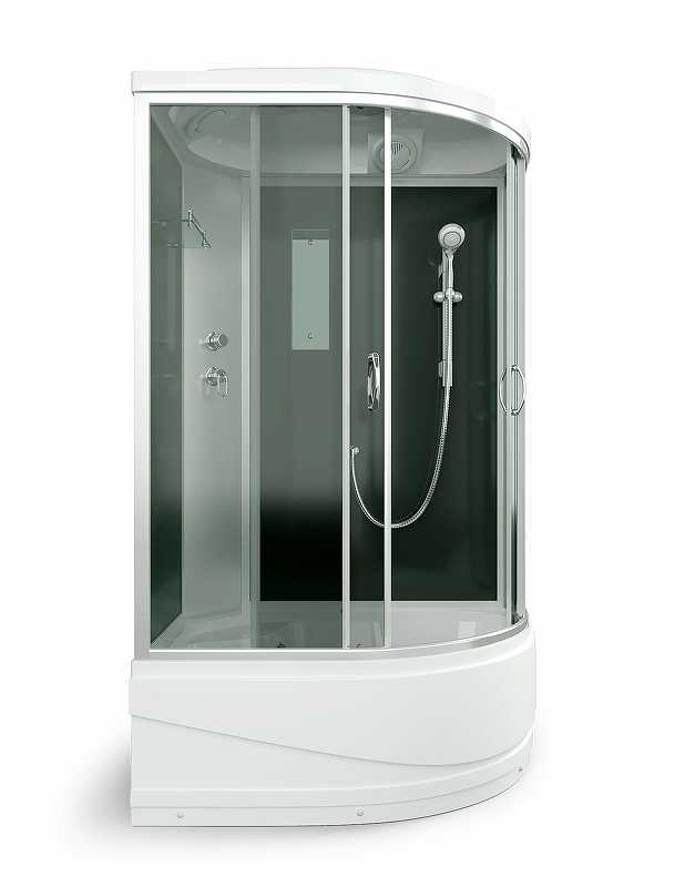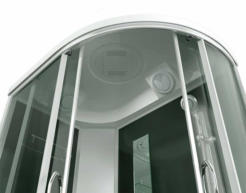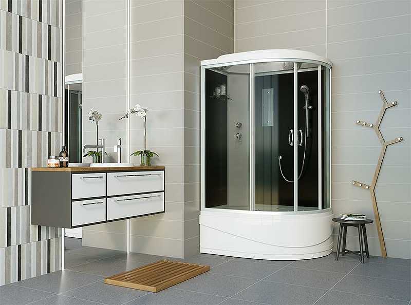 - кабина оборудована влагоустойчивым зеркалом и вместительной стеклянной полкой с ограничителем