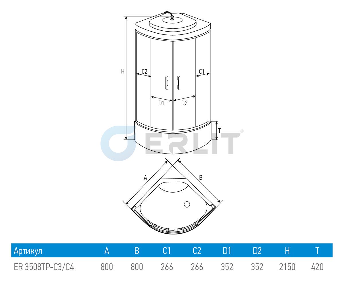 Душевая кабина Erlit 80х80 стекло тонированное (ER3508TP-C4)