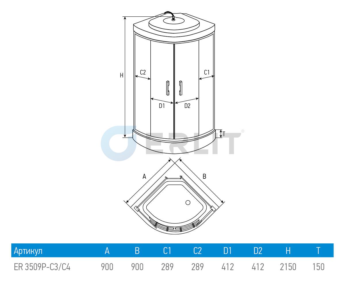 Душевая кабина Erlit 90х90 стекло матовое (ER3509P-C3)