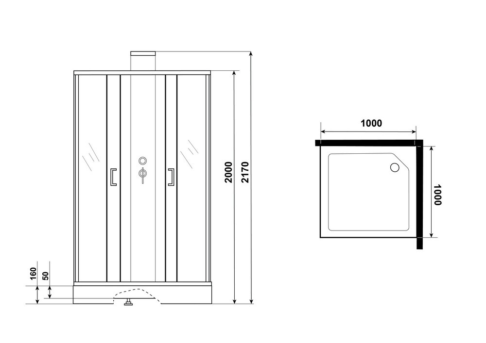 Душевая кабина Grossman 100x100 стекло прозрачное, профиль черный (GR-250Q)