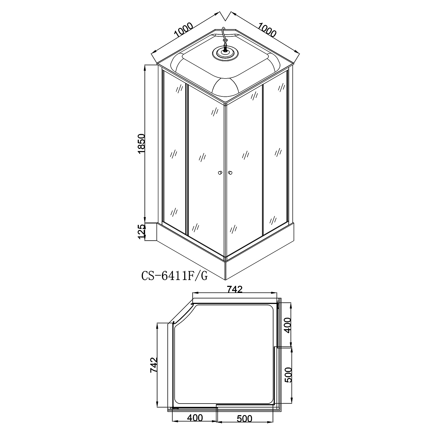 Размеры: 1000х1000х2150 мм – оптимальные габариты для большинства ванных комнат, обеспечивающие достаточное пространство для комфортного принятия душа.