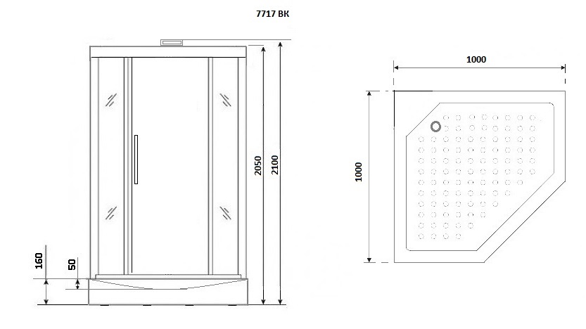 Душевая кабина пятиугольная 100х100 Niagara NGL-7717WBK поддон низкий высотой 15 см.
