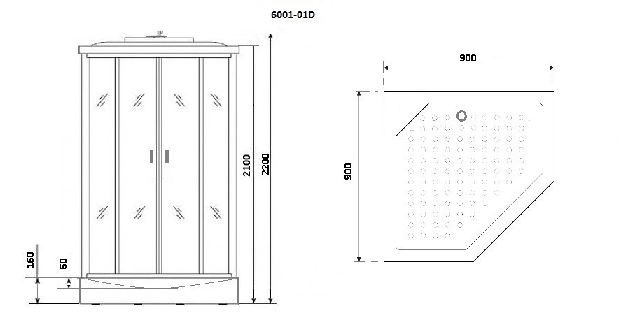 Душевая кабина пятиугольная 90х90 Niagara NG-6001-01D поддон низкий высотой 16 см.