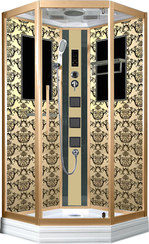 Душевая кабина Niagara 7717G создана для тех, кто ищет по-настоящему роскошное решение для ванной комнаты. Она привлекает внимание оригинальным узором задних стенок, выполненных в золотом цвете.