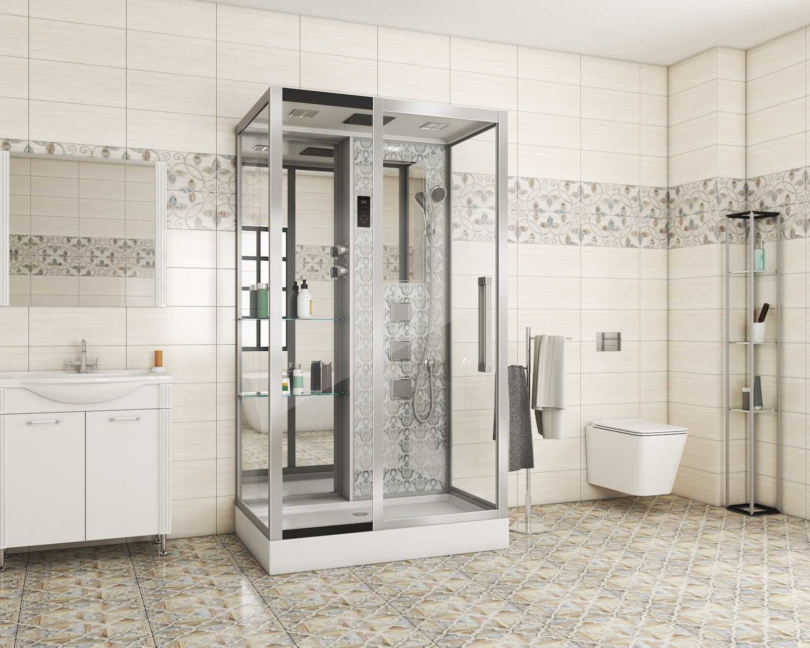 Комплектация: зеркало, полочка, душевая лейка, тропический душ, вентиляция, смеситель классический, радио.