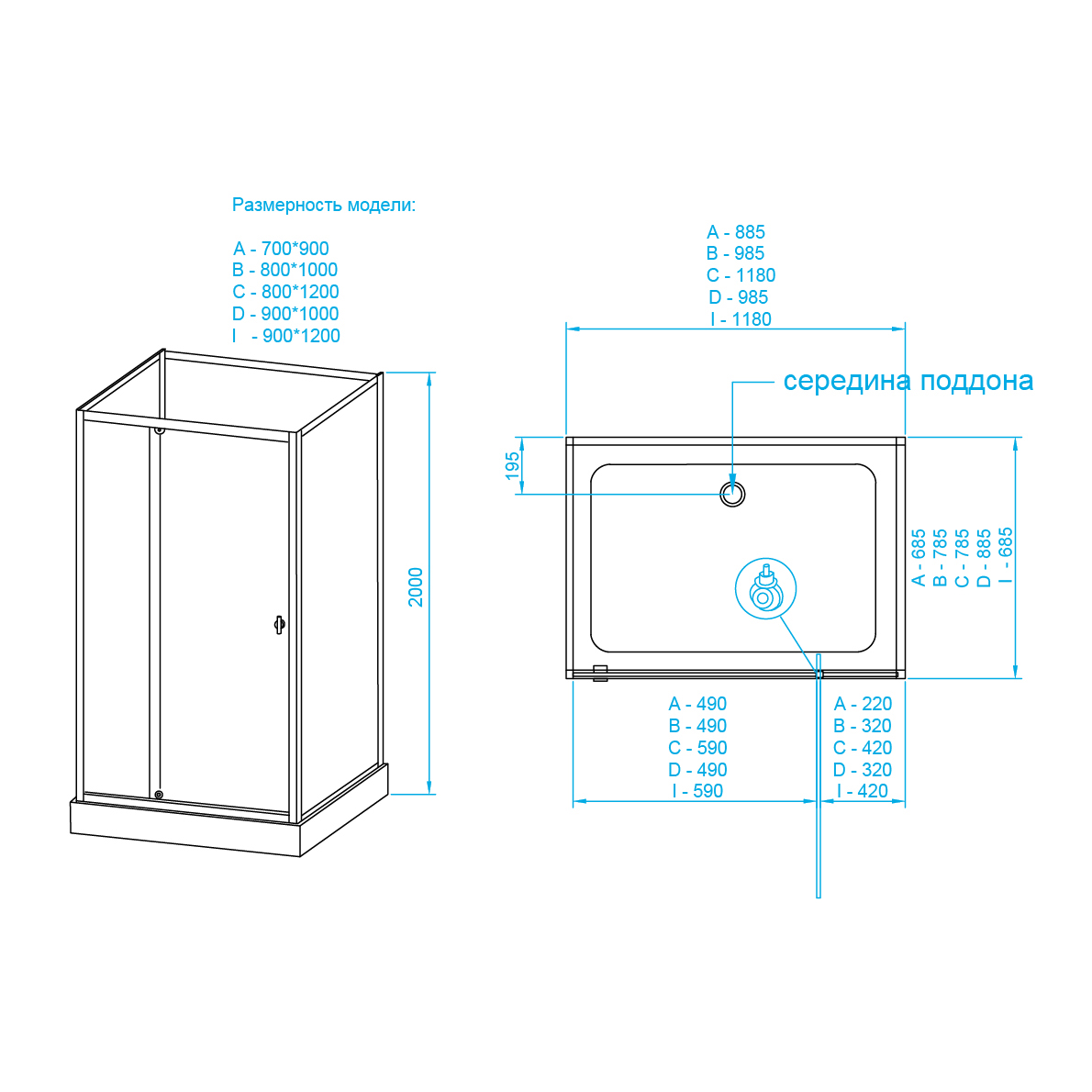 В комплектацию мы включили всё необходимое: сифон и гофру для подключения, смеситель, полочку и зеркало, надежный акриловый поддон прочностью до 150 кг и ручной душ со шлангом длиной 1 м.