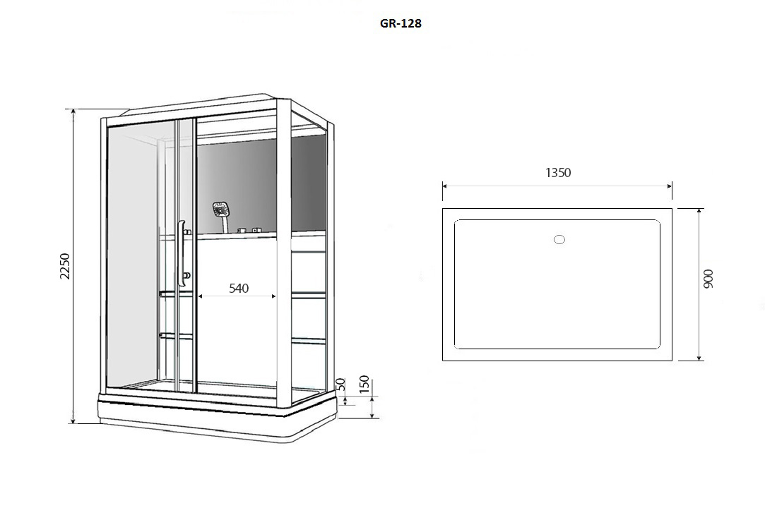 Душевая кабина с гидромассажем Grossman 135x90 стекло прозрачное, профиль белый (GR-128 L)