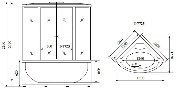 Душевая кабина с гидромассажем Timo T-7725 120x120x220 стекло прозрачное, профиль хром (T-7725)