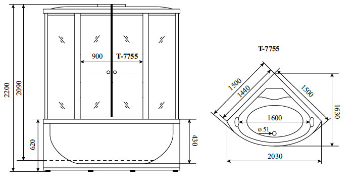 Душевая кабина с гидромассажем Timo T-7755 150x150x220 стекло прозрачное, профиль хром (T-7755)