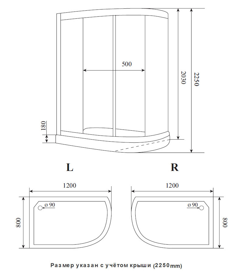 Душевая кабина Timo ILMA 902 Black R 120x80x222 стекло прозрачное, профиль черный (ILMA-902 R B)