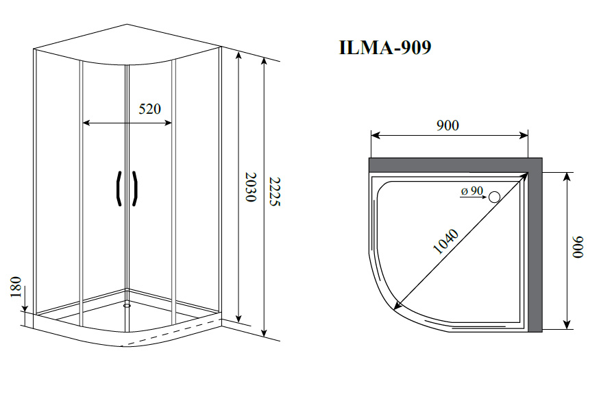 Душевая кабина Timo Ilma 909 90x90x223 стекло прозрачное, профиль хром (ILMA-909)