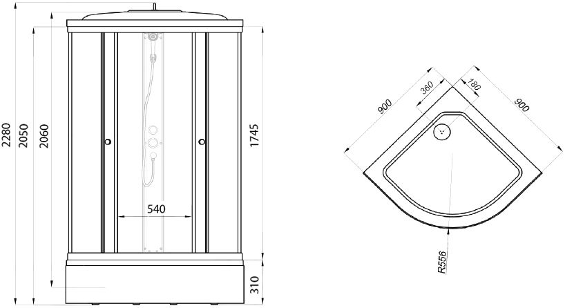 Кабина душевая Тритон 900*900*2280 Лайт В (стекло градиент, профиль белый, с душевым набором ДН4, средний поддон, сифон с сифоном D90 мм)