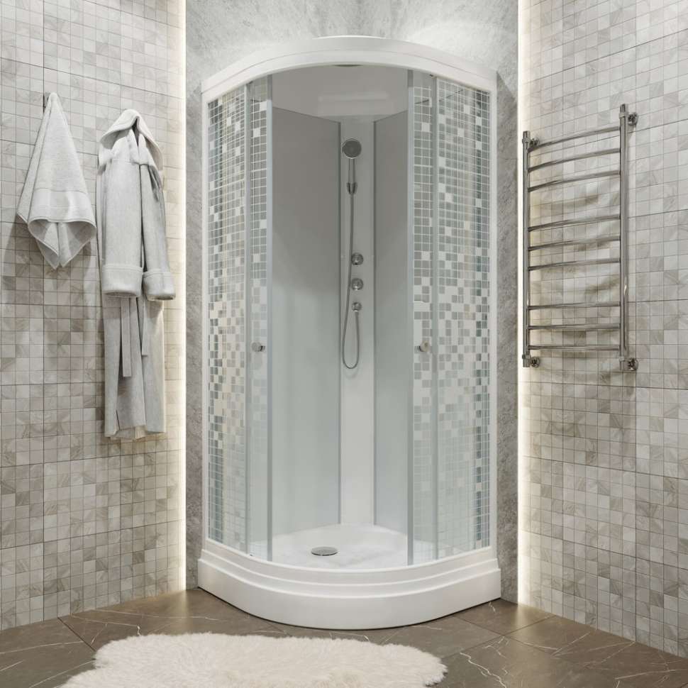 Поддон кабины: низкий, высотой 17 см - комфортный, безопасный, идеально подойдет для взрослых и детей. Небольшая высота поддона удобна для пожилых людей. В комплектацию кабины входит сифон, задние стекла кабины белые.