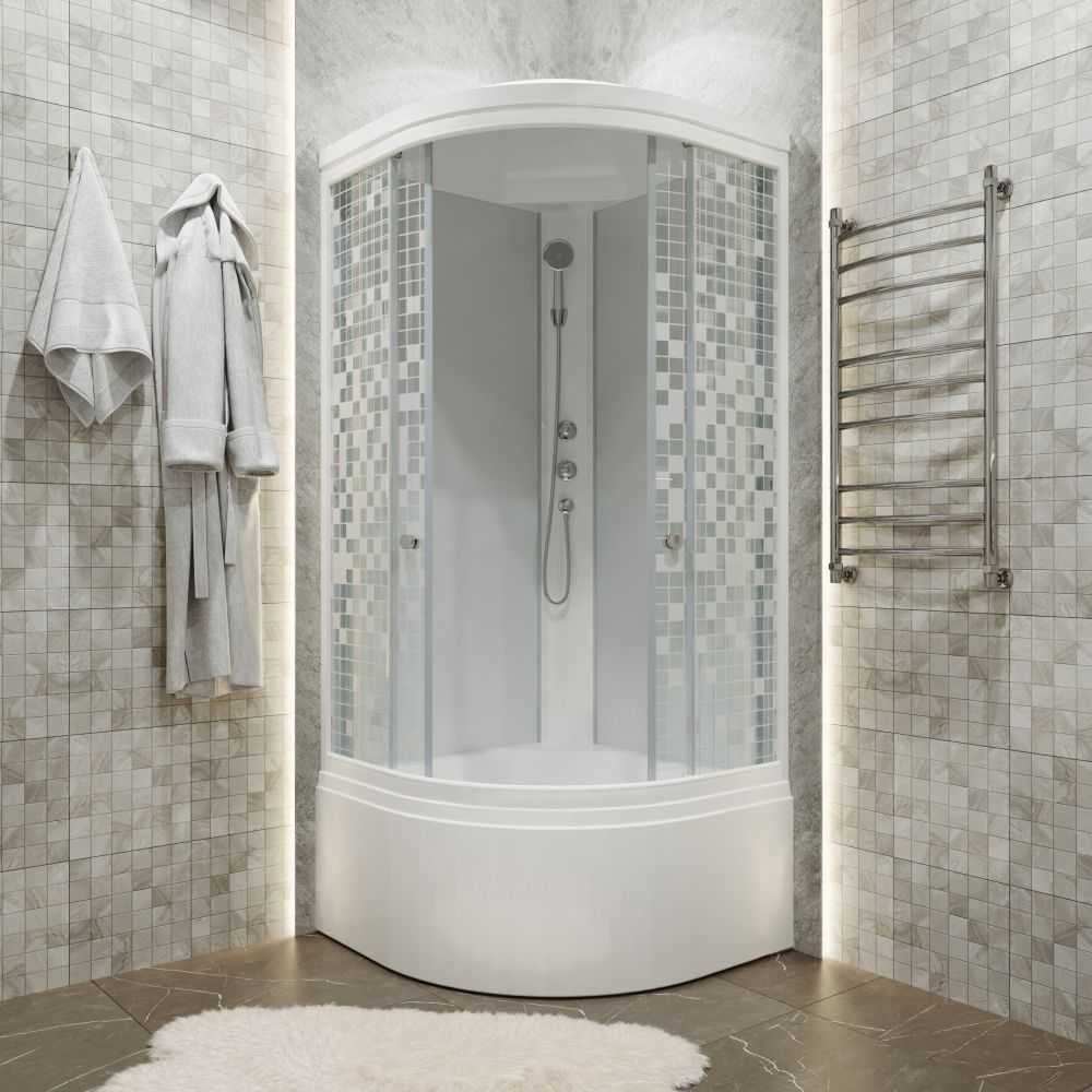 Конструкция бокса оснащена крышей, глубоким поддоном с угловым сидением и полностенным душевым ограждением из закалённого ударопрочного стекла.