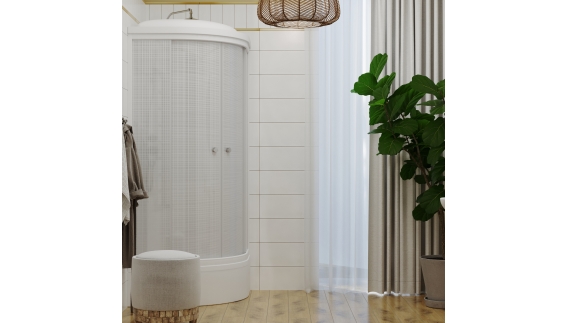 Поддон кабины: средний, высотой 30 см - комфортный, безопасный, идеально подойдет для взрослых и детей. Небольшая высота поддона удобна для пожилых людей. В комплектацию кабины входит сифон, задние стекла кабины белые.