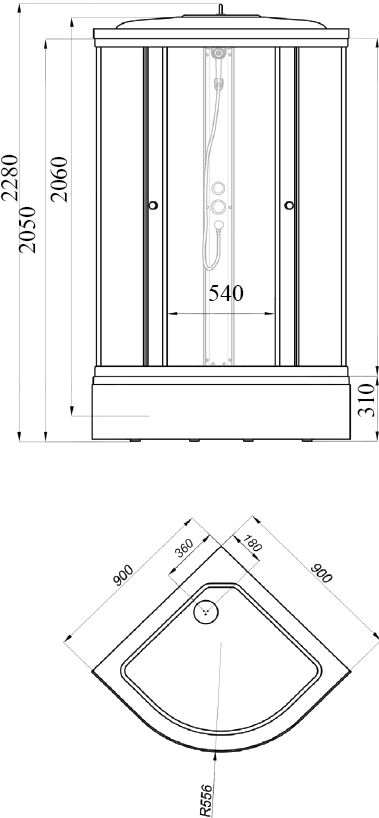 Поддон кабины: средний, высотой 31 см - выступает золотой серединой между высоком и низком поддоном, идеально подойдет для взрослых и детей. В комплектацию кабины входит сифон, задние стекла кабины белые.