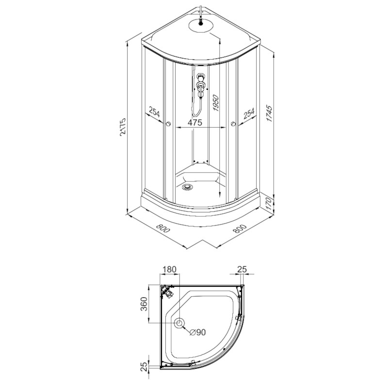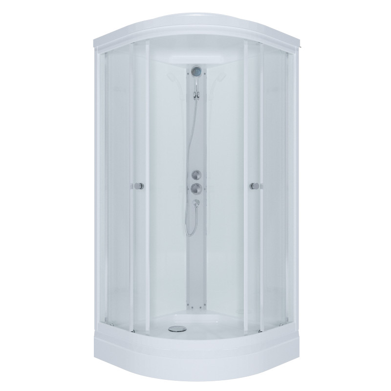 Поддон кабины: низкий, высотой 17 см - комфортный, безопасный, идеально подойдет для взрослых и детей. Небольшая высота поддона удобна для пожилых людей. В комплектацию кабины входит сифон, задние стекла кабины белые.