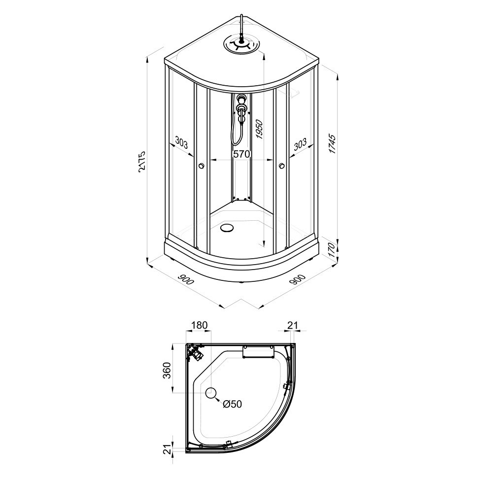 Душевая кабинаTriton Грэй 90x90 стекло прозрачное, профиль белый (DK377)