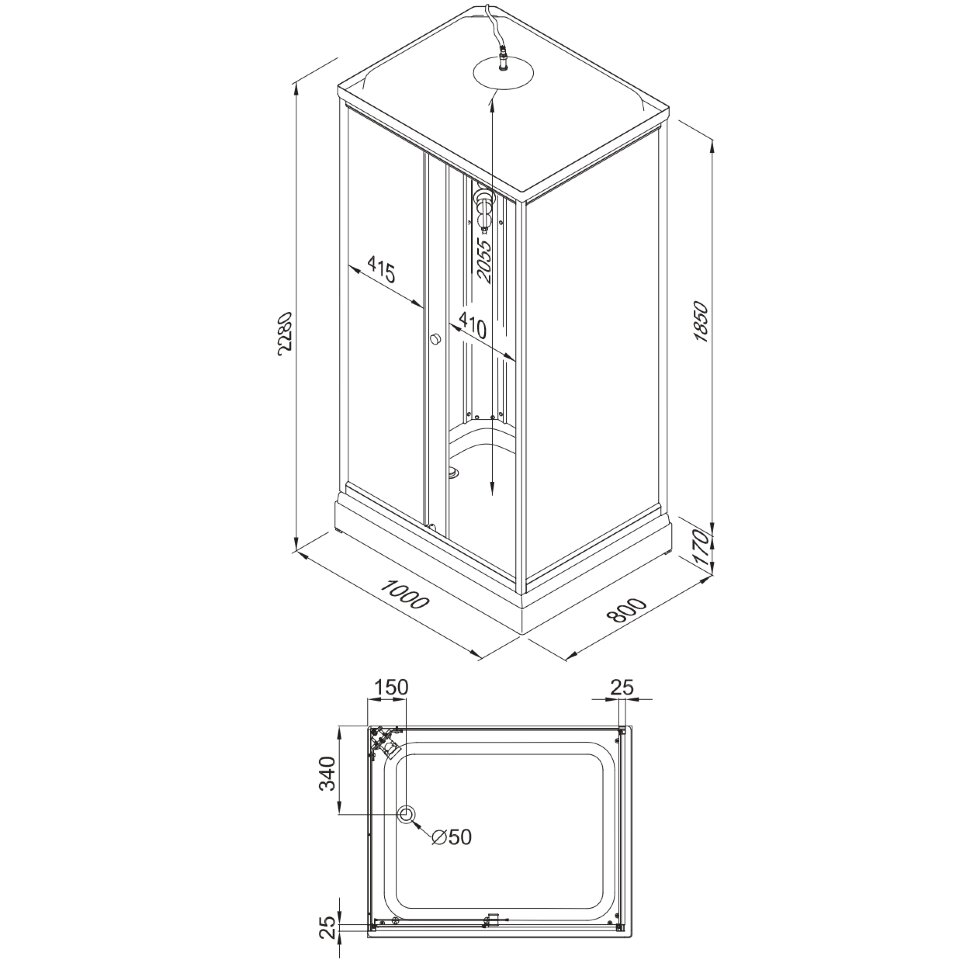 Душевая кабинаTriton Квадро 100x80 стекло прозрачное полосы, профиль белый полосы (DK263)
