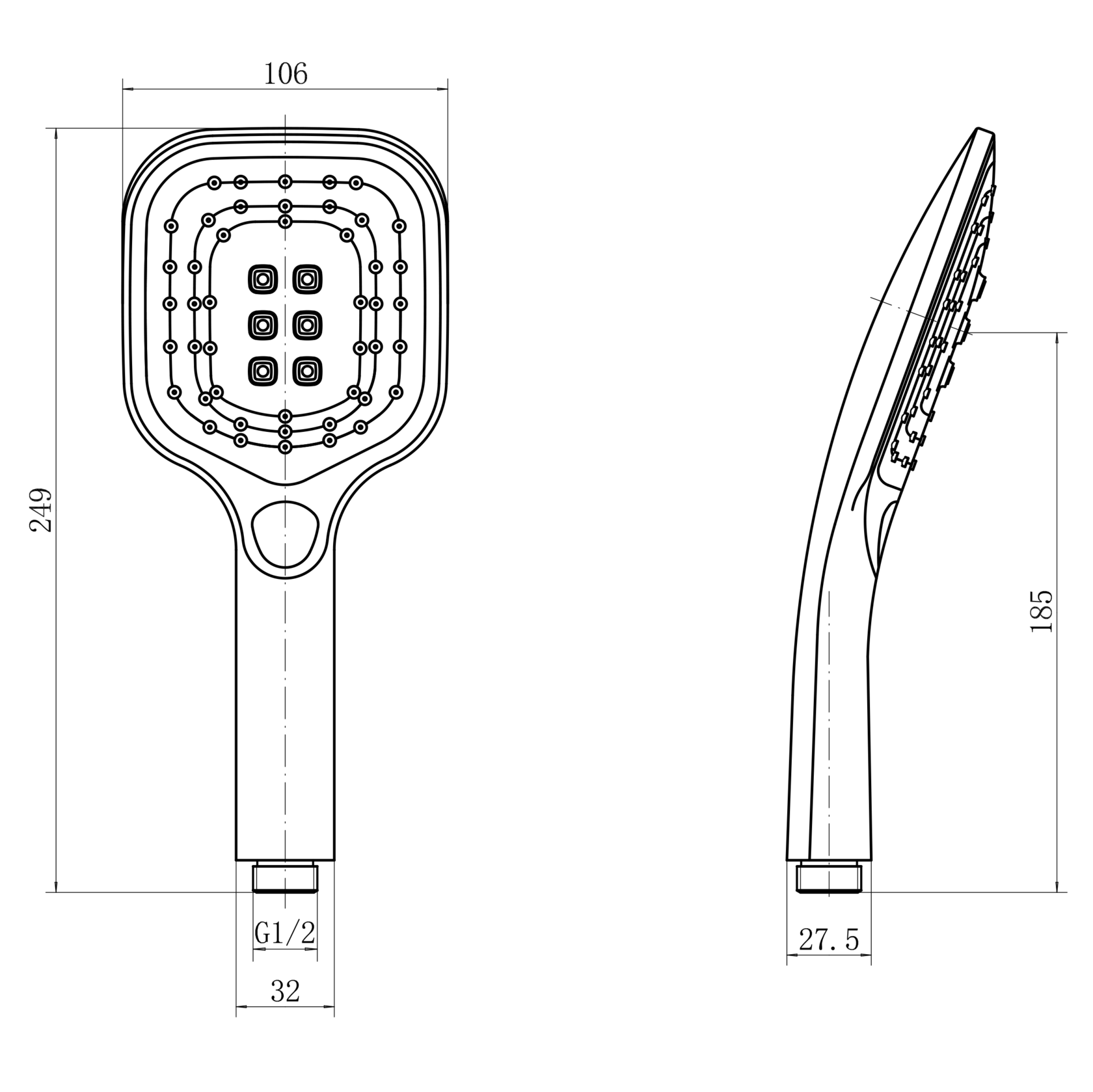 лейка ручная душевая квадратичная, 106х110 мм