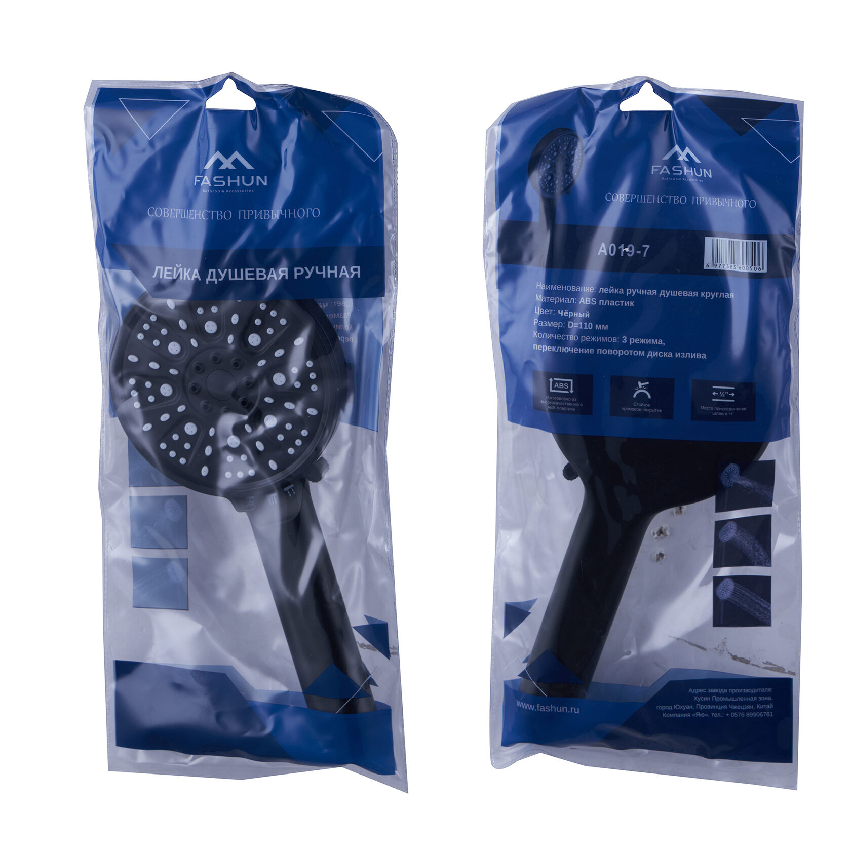Душевая лейка Fashun круглая чёрная (A019-7)