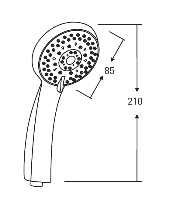Душевая лейка диаметром 85 мм, количество режимов: 5, переключение режимов: вращение.