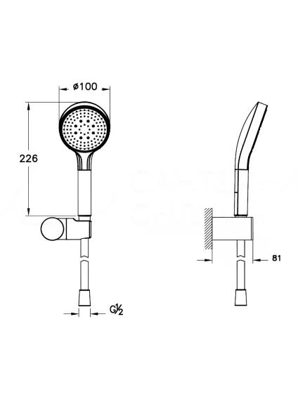 Base Ручной Душ 100 мм, хром, душевой шланг. держатель