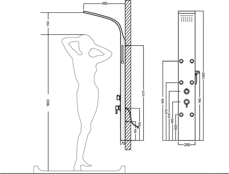 - Верхний душ: тропический дождь / каскадный (водопад).