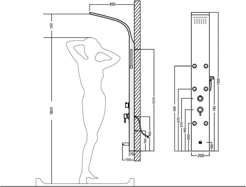 - Верхний душ: тропический дождь / каскадный (водопад).