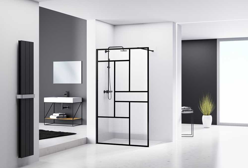Душевая перегородка Abber Immer Offen 1000*2000 стекло прозрачное, профиль черный (AG63100B)