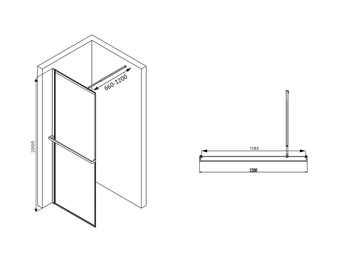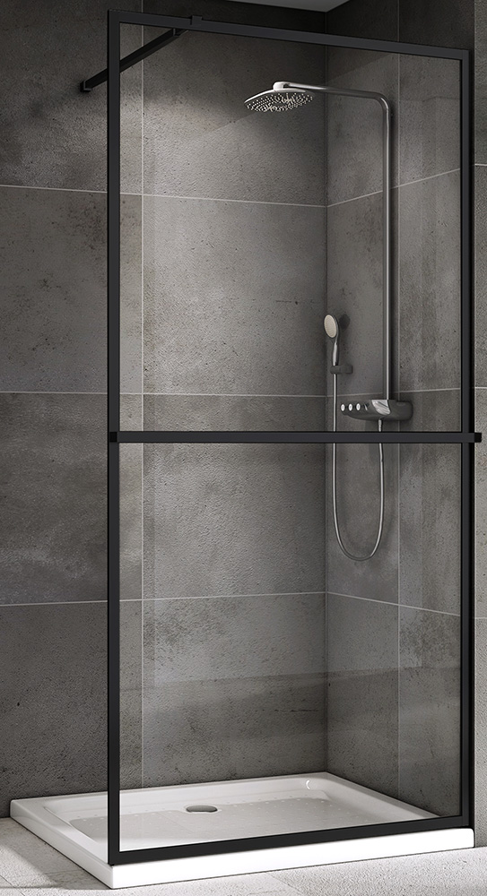 Душевая перегородка Abber Immer Offen 1200*2000 стекло прозрачное, профиль черный (AG60120B)