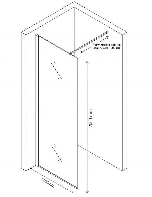 Душевая перегородка Berges Sky 1100*2000 стекло прозрачное, профиль хром сильвер (64004)