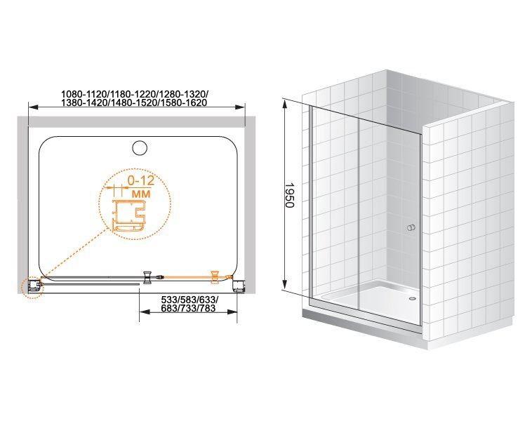 Душевая перегородка Cezares Anima 150x195 стекло прозрачное, профиль хром (ANIMA-W-BF-1-150-C-Cr)