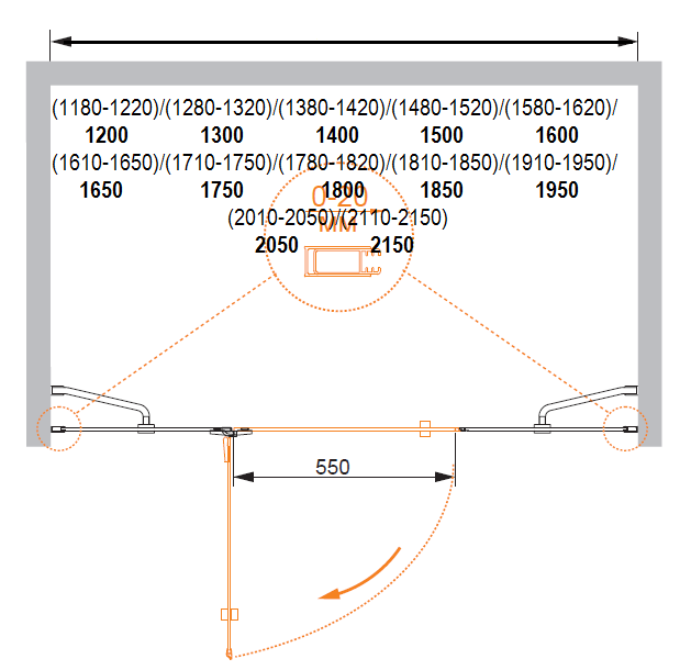 Душевая перегородка Cezares Bergamo 175x195 стекло прозрачное, профиль хром (BERGAMO-W-B-13-80+60/40-C-Cr-R)