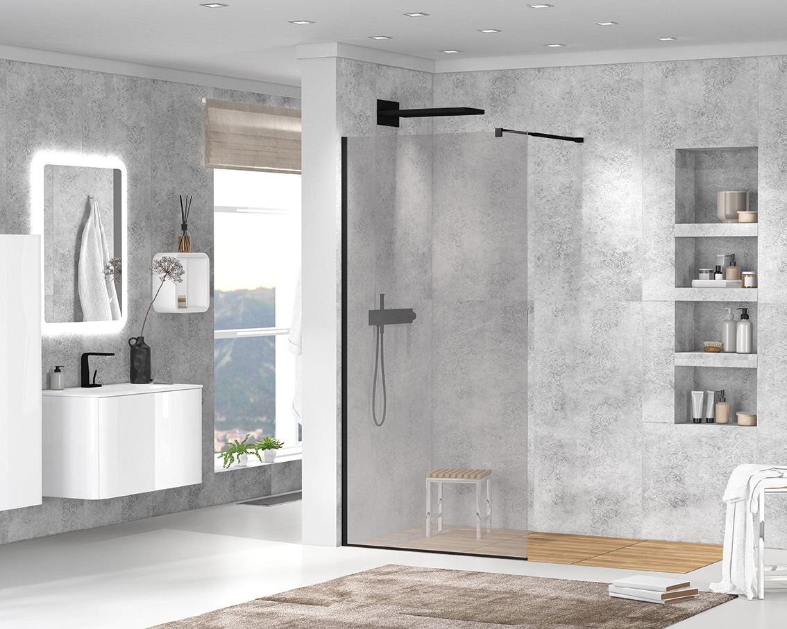 Душевая перегородка Cezares Liberta 140x195 стекло прозрачное, профиль черный (LIBERTA-L-1-140-120-C-NERO)