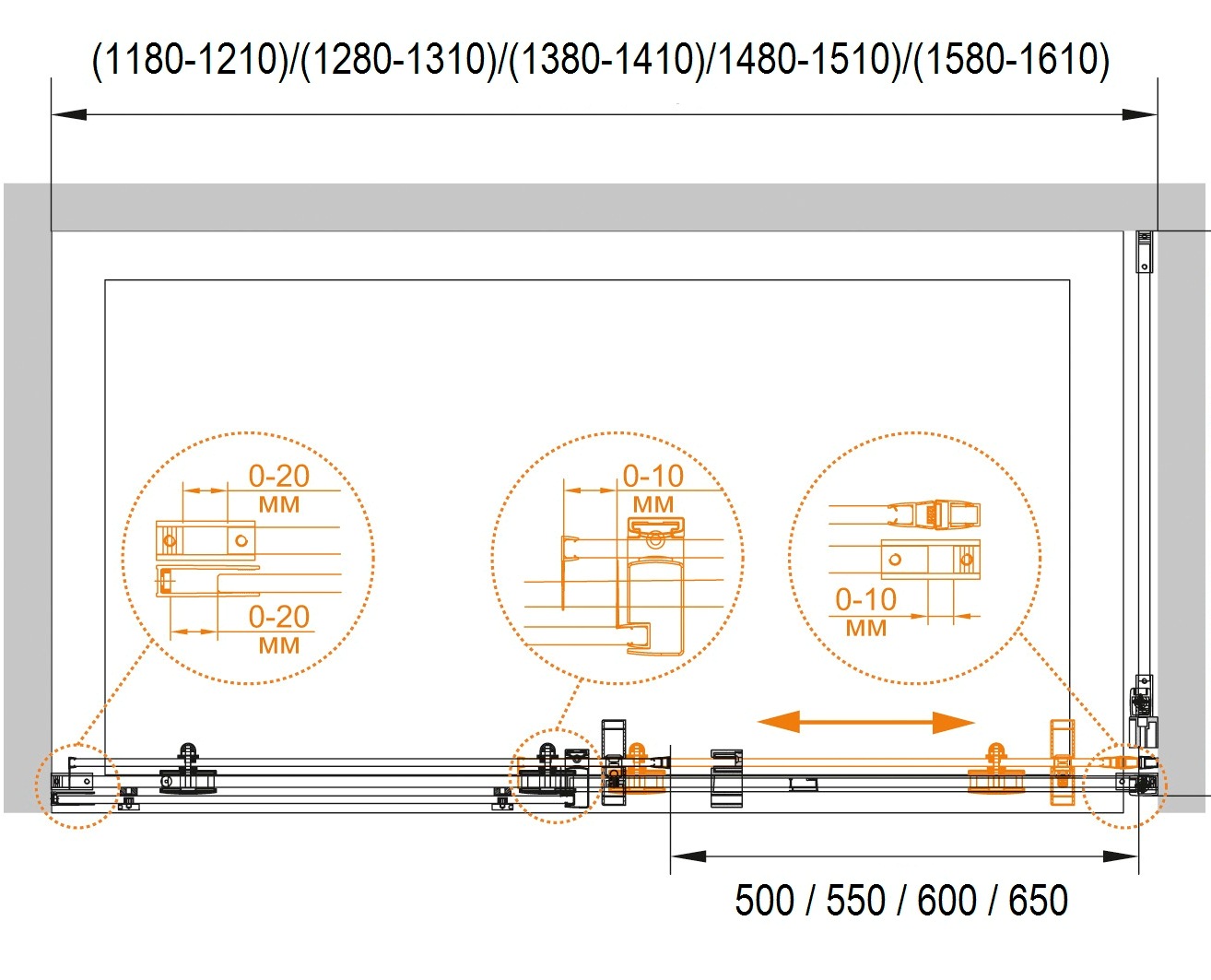 Диапазон регулировки ширины, см 158-161
