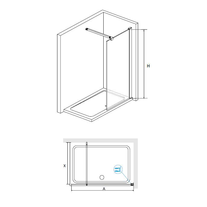 Душевая перегородка неподвижная. Длинна кронштейна 1200 мм. Трап или поддон приобретается отдельно.