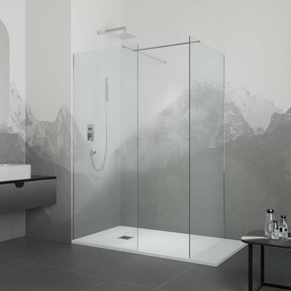 Толщина стекла этой модели составляет 8 мм, что делает его прочным и надежным. Прозрачное стекло эффективно передает свет и создает ощущение простора в ванной комнате. Профиль перегородки выполнен в привлекательном хромированном цвете, который подчеркивает современный дизайн.