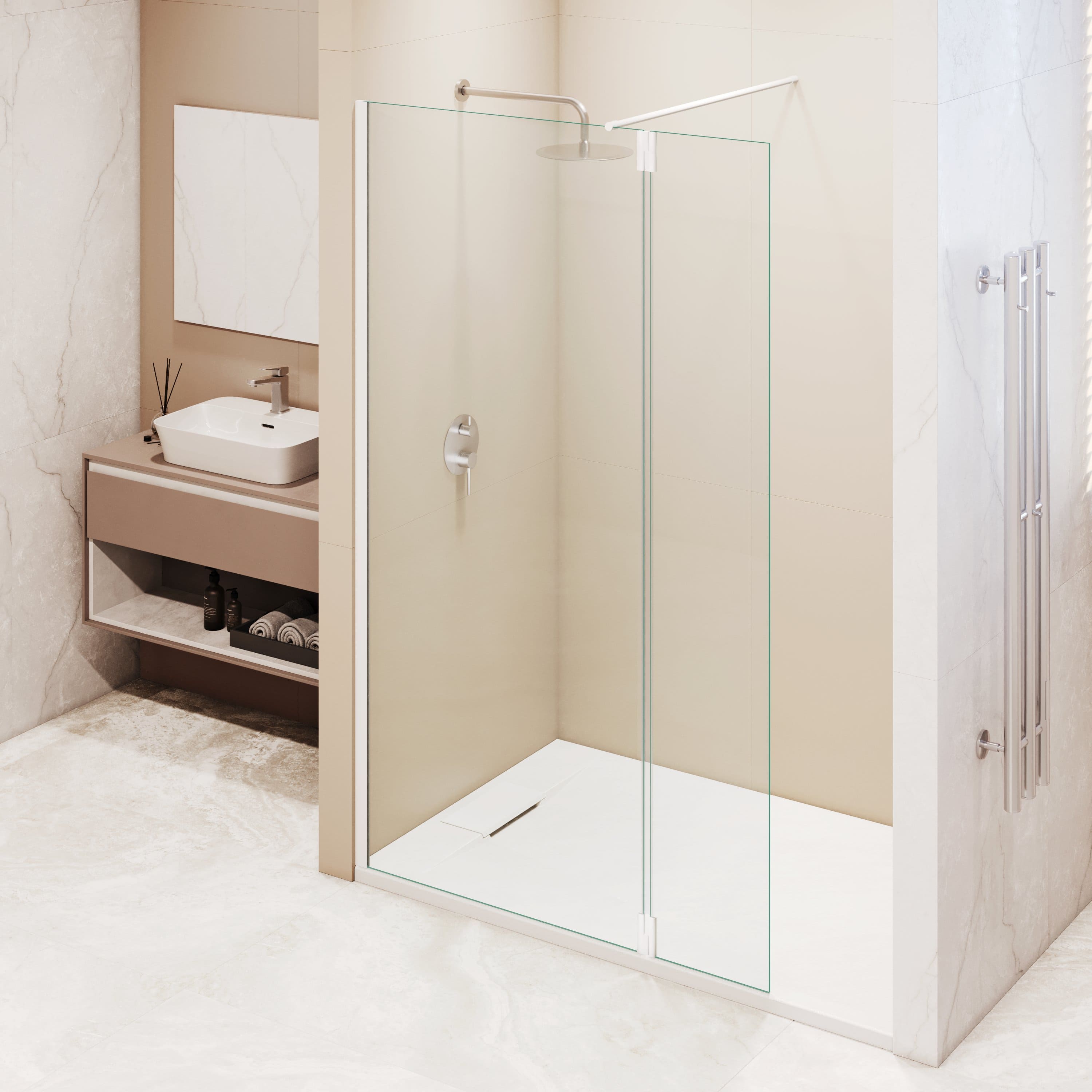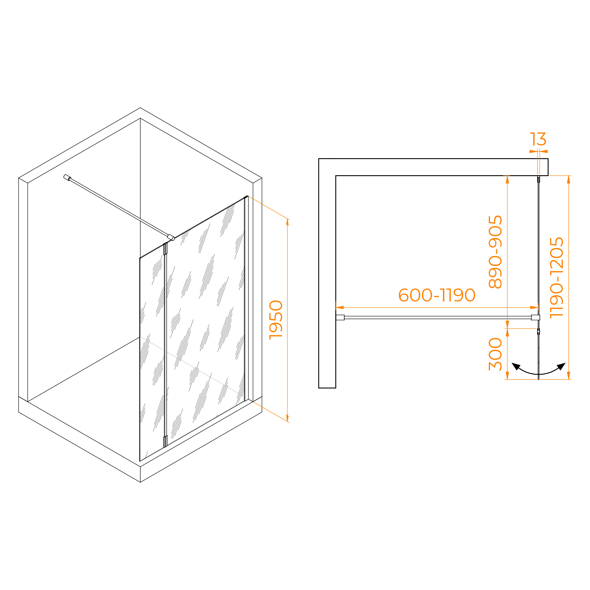 Душевая перегородка стационарная с поворотной маятниковой частью 300 мм