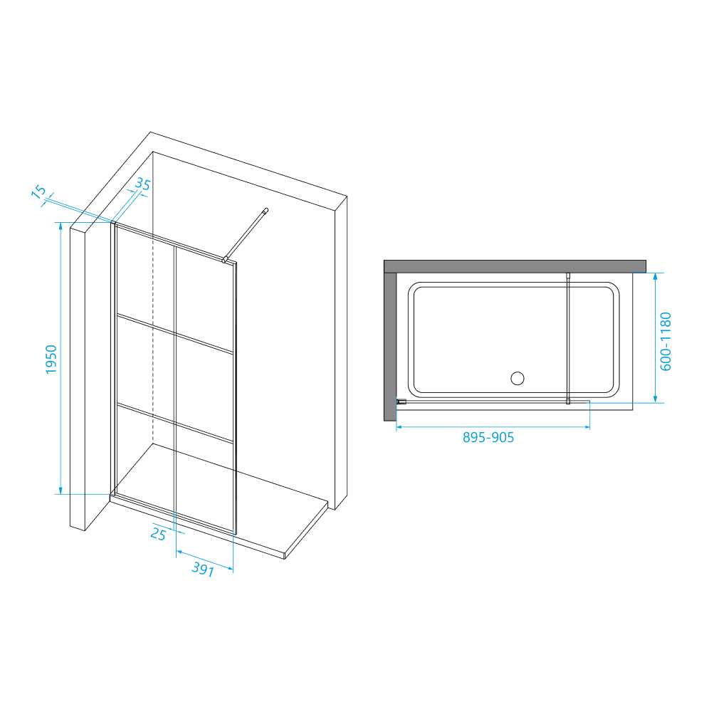 Душевая перегородка RGW WA-111 B 900*1950 стекло прозрачное (принт), профиль черный (411011109-84)