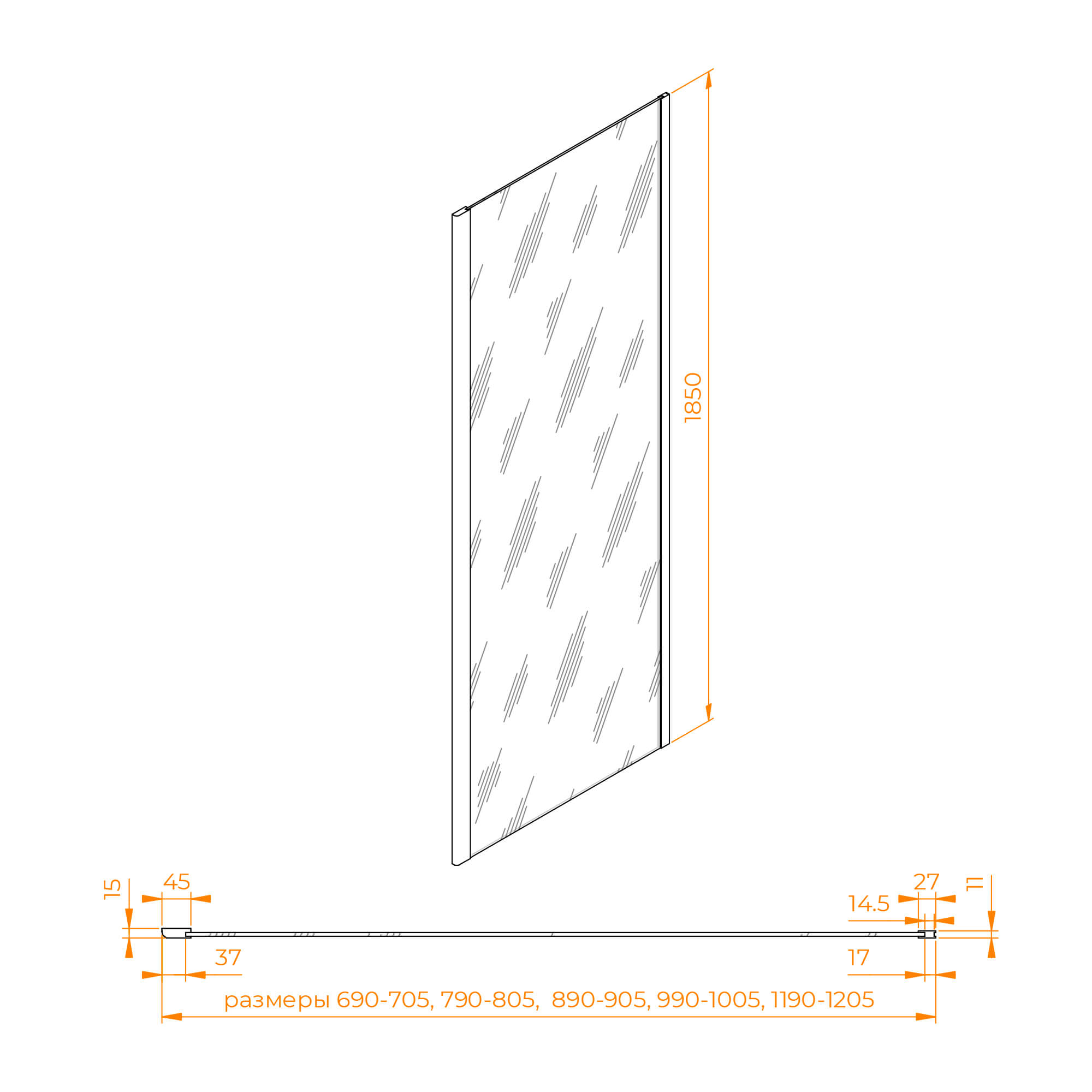 Размеры с диапазоном регулировок: 990-1005
