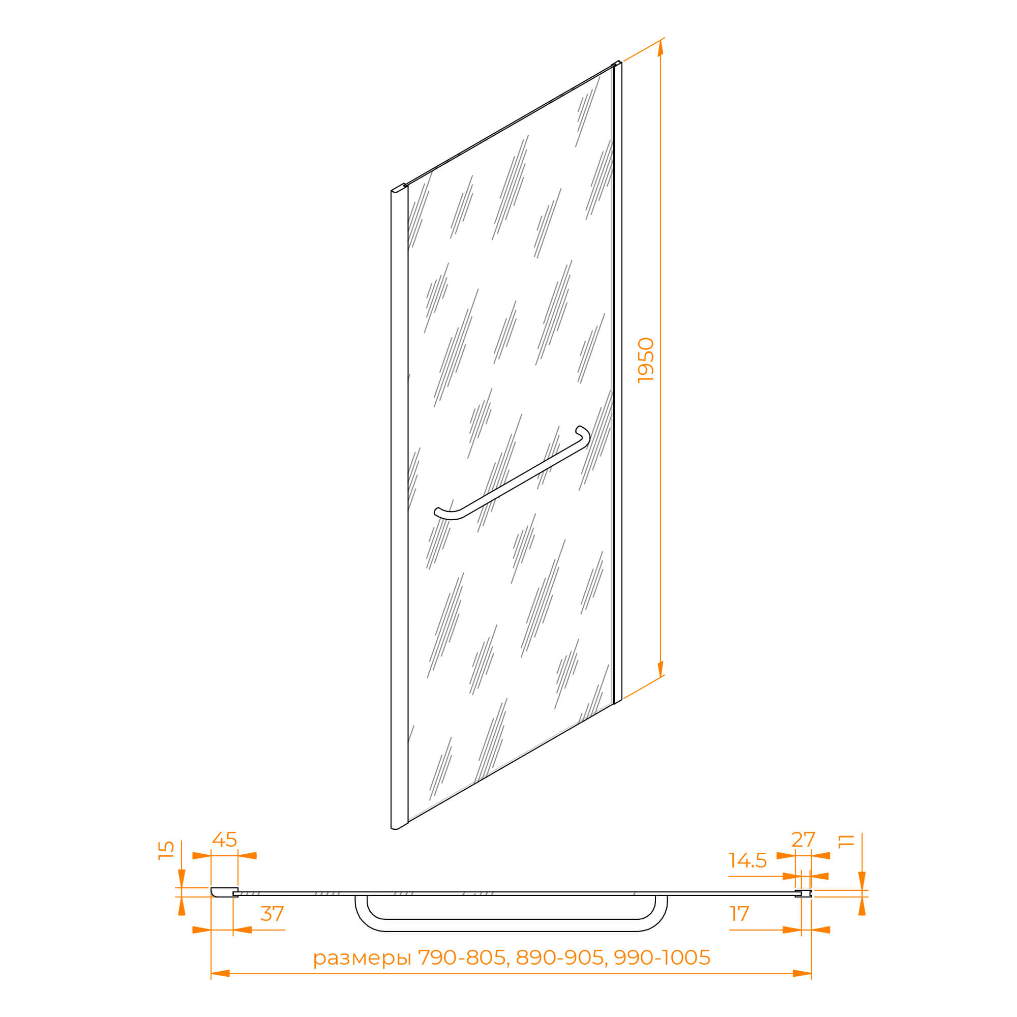 Размеры с диапазоном регулировок: 790-800
