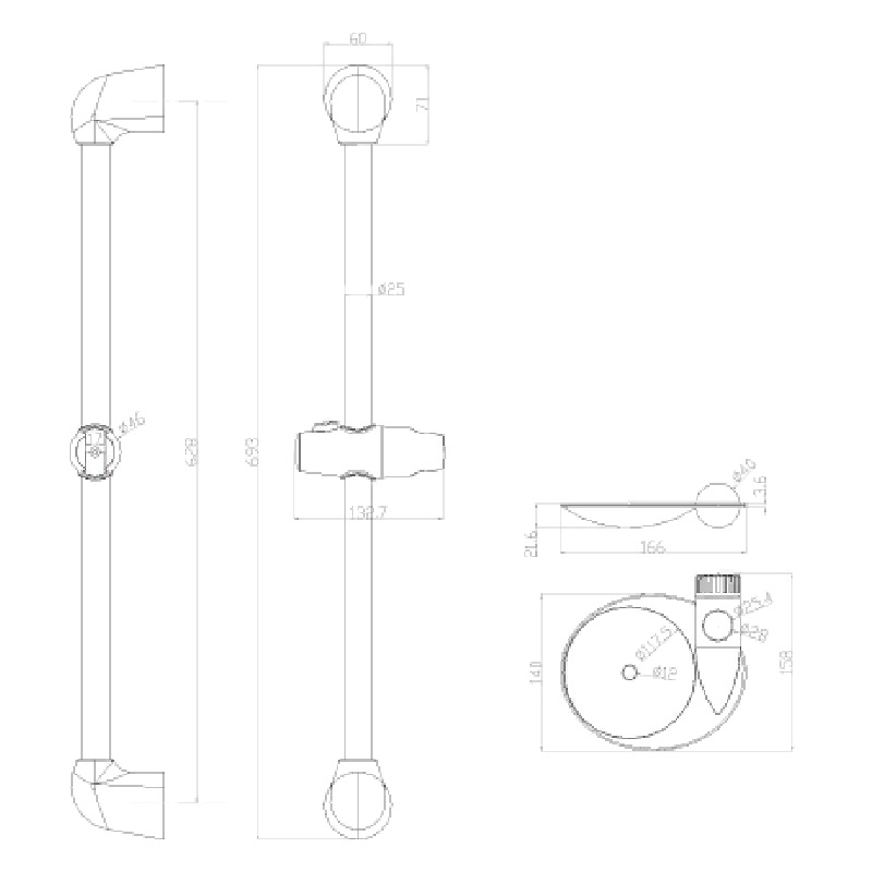 Душевая штанга Lemark LM8065C с круглой мыльницей, 693 мм.