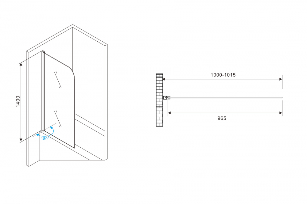 Душевая шторка для ванн Abber Ewiges Wasser 100x140 стекло прозрачное, профиль черный (AG52100B)