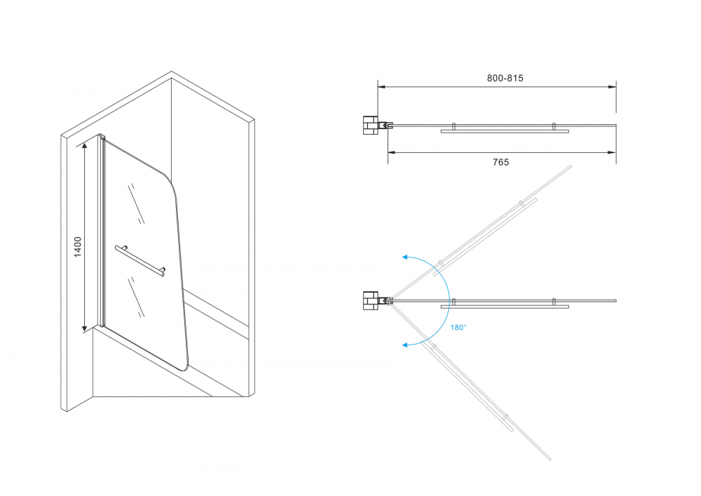 Душевая шторка для ванн Abber Ewiges Wasser 80x140 стекло прозрачное, профиль черный (AG50080B)