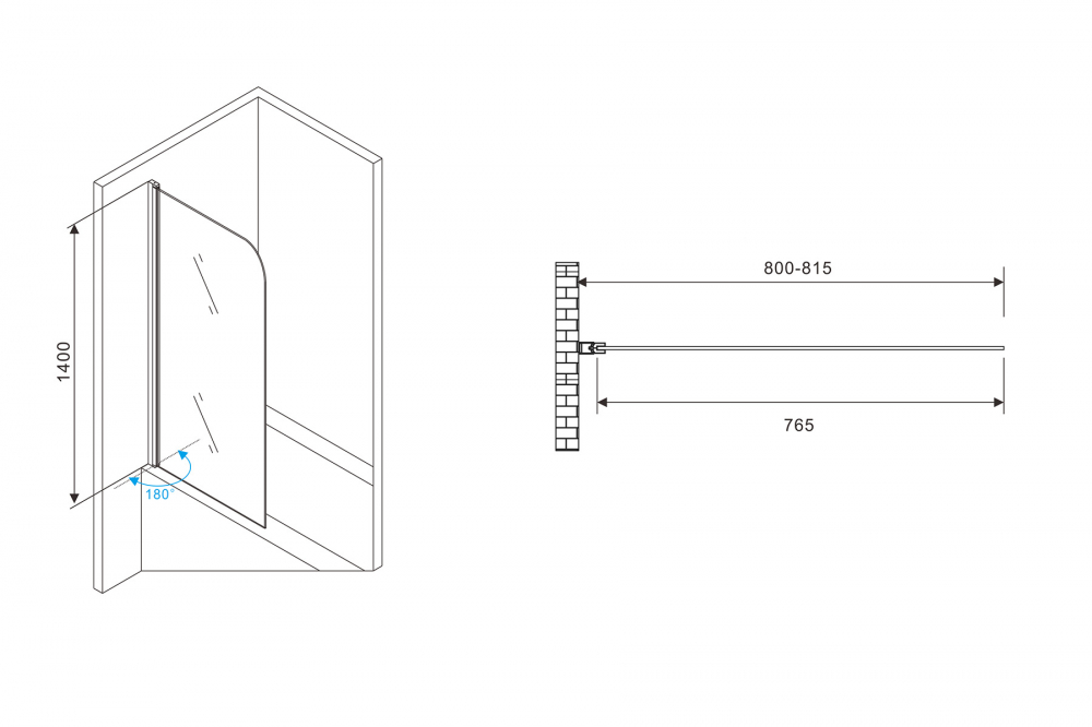 Душевая шторка для ванн Abber Ewiges Wasser 80x140 стекло прозрачное, профиль черный (AG52080B)
